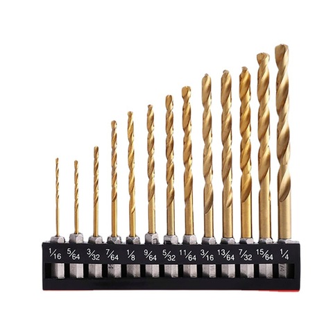 13Pcs Titan Twist Khoan Bit Set Hex Shank Tốc Độ Cao Thép 1/16 ''-1/4'' Cho Gỗ Nhựa Hợp Kim Nhôm Thay Đổi Nhanh Chóng